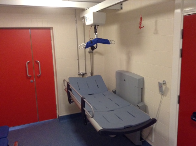 The moving and handling equipment supplied by OpeMed is designed to accommodate users up to 200kg for all changing requirements. The Changing Table is height adjustable to fit to the carer’sheight and the OT200 Ceiling Hoist is fixed onto an XY Ceiling Track, providing full room coverage so that the user is not restricted from where the hoist traverses. This disabled changing area is available to both Leisure centre users and the general public accessible via radar key.