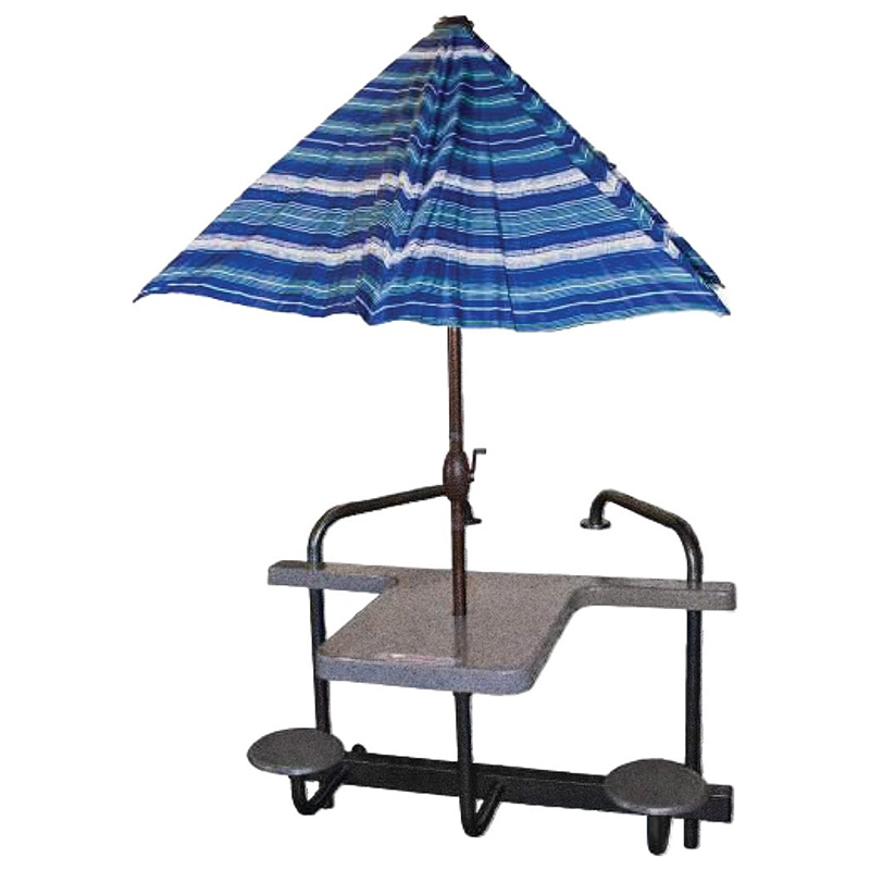 Upgrade your pool experience with the Over the Edge 3-Seat Bar Top Table. The table and bar stools have been designed for comfort, safety and the best in-water experience. The pool bar table hangs Over the Edge of the pool using standard ladder holes or new mounts can be added to any pool deck.