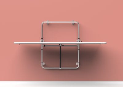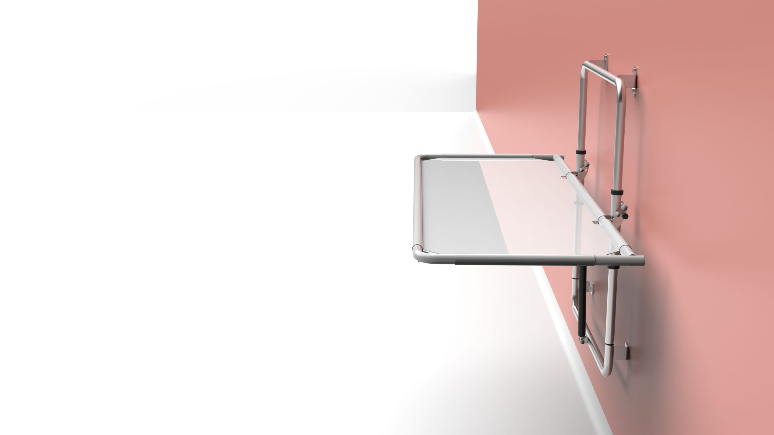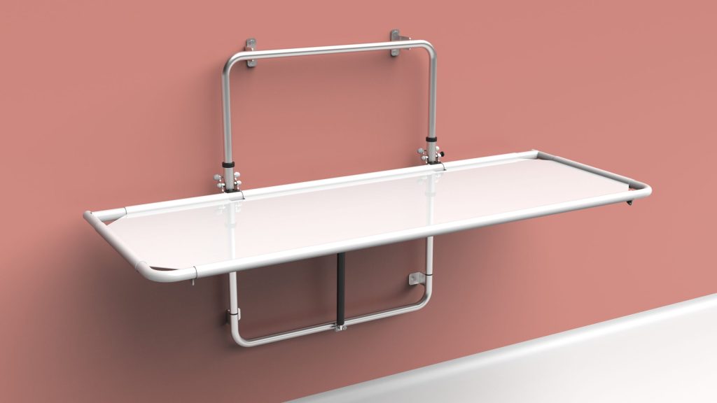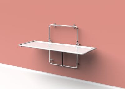 Before the client is hoisted onto the changing bed, the carer can set the changing bench to the most comfortable working height for them using the adjustable lever. Once the client is on the stretcher, our patented mechanism ensures that the carer cannot accidentally move the bed while in use. When not in use, the CTM3 changing stretcher folds neatly away and protrudes just 180mm of the wall.