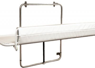 This piece of specialist equipment has a wide range of optional extras for added safety and comfort such as a fold out guard and protective bumper as well as splash skirts for showering and a removable mattress for added comfort.