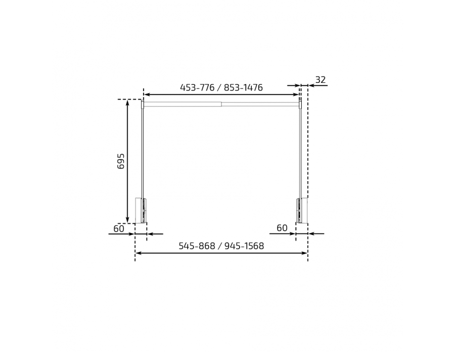 - Telescopic for interior wardrobe dimensions from 54.5 to 156.8 cm in width