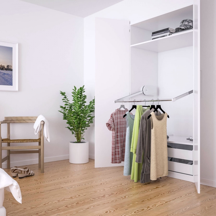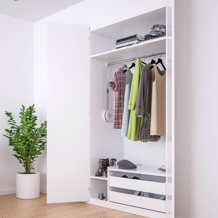 • The motor units take up little space and is screwed into the sides of the wardrobe.