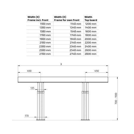 (700-1100 mm excl. top board)