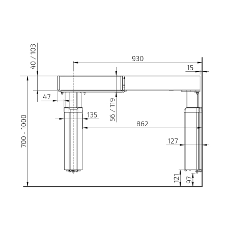 Motorised, steplessly adjustable 300 mm (700-1000 mm excl. top board)
