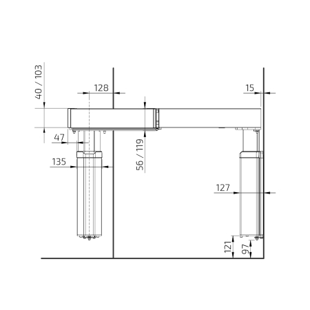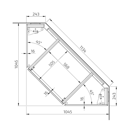 Kitchen Worktop Lift Baselift Corner 6302HA, 45°- 45°, wall-mounted