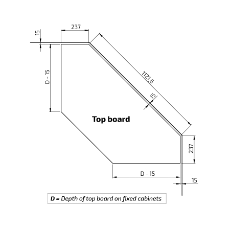 565-630 mm (15 mm shallower than worktops on fixed cabinets)