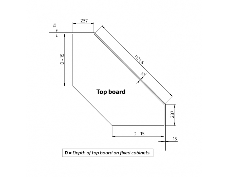 - Brackets and screws for installation of fronts and countertop are included in the delivery