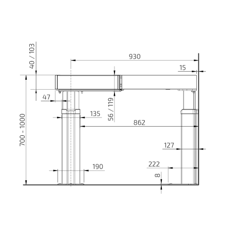 Motorised, steplessly adjustable 300 mm (700-1000 mm excl. top board)