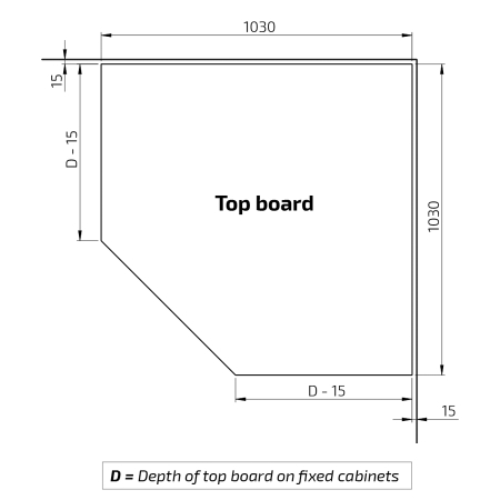565-630 mm (15 mm shallower than worktops on fixed cabinets)