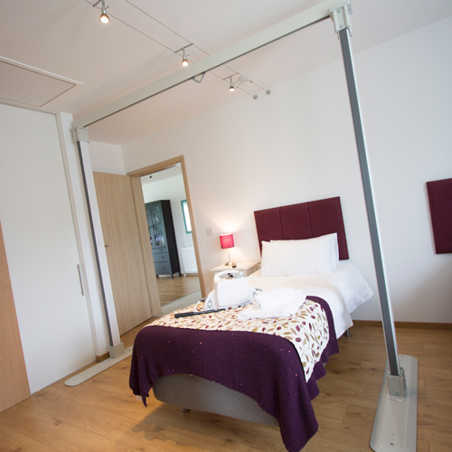 When used in apartments and holiday homes, hotels or when the ceiling hoist (or overhead track hoist) is not a permanent fixture, the OpeTrack Gantry System is ideal. The OpeMed ceiling hoist gantry is compatible with all OpeMed hoist options.