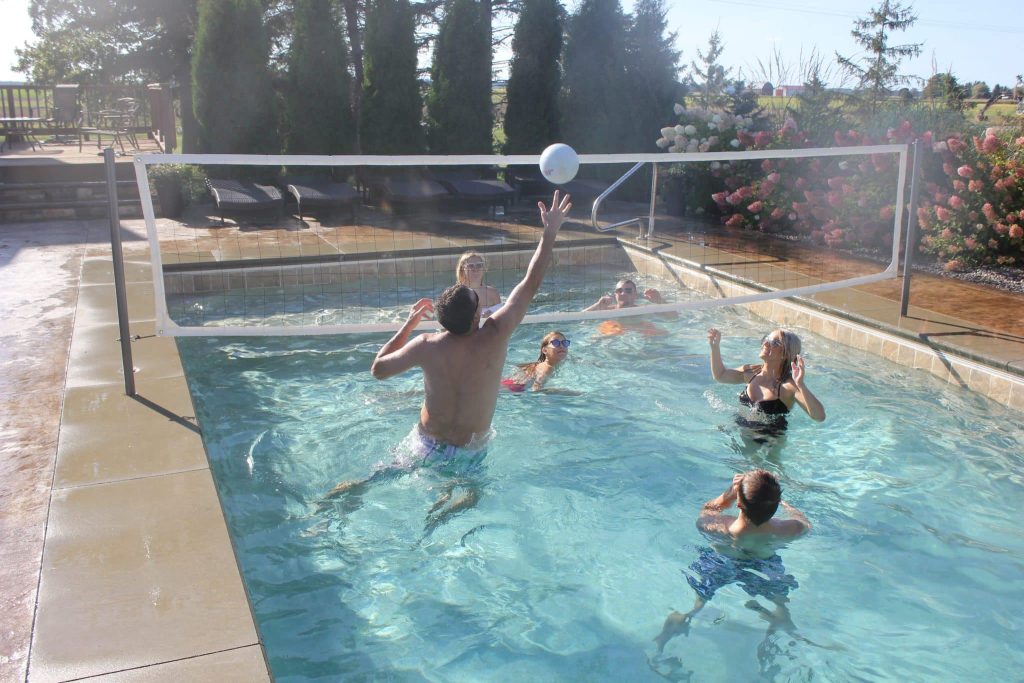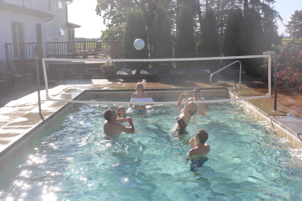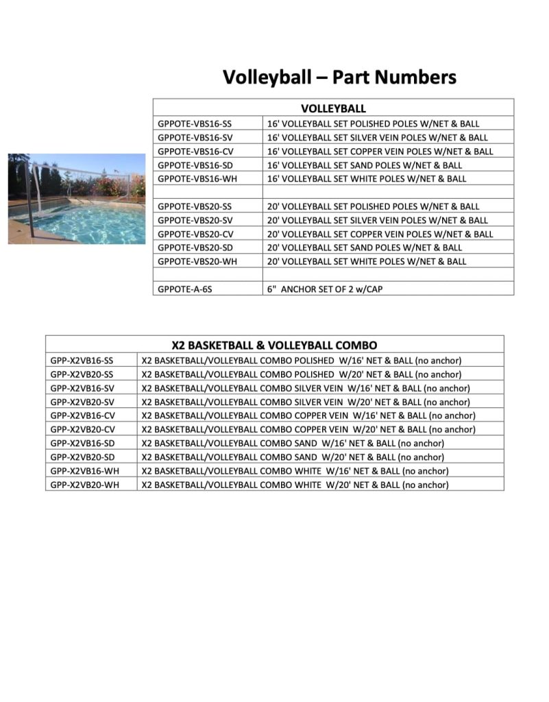 - Includes Two 304 Stainless Steel Posts, 16’ or 20’ Competition Quality Adjustable Net, Water Volleyball, and Needle