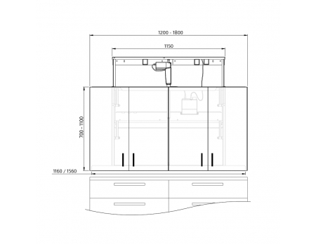 1150 mm (cabinet width 1200-1800 mm)
