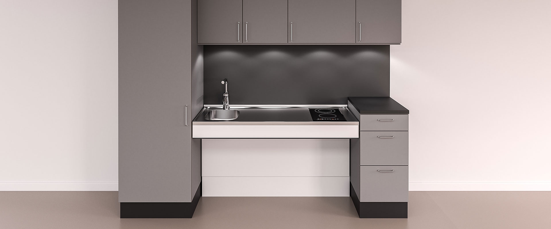 The cabinet unit is available in two heights that fit 70 cm or 85 cm high cabinets. The lift is available in two different depths and in a wide range of widths to fit cabinets that are 50-100 cm wide.