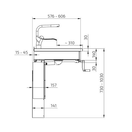 Wall Mounted Cranked Height Adjustable Sink Module 6350-ESH