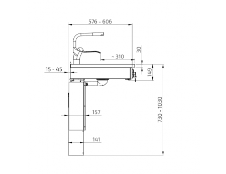 Motorised, steplessly adjustable 300 mm (700-1000 mm excl. top board)
