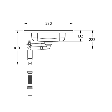 * Adapted to our height-adjustable bench systems and thus provide a 15 mm space on the wall side for splash protection. The width of our sinks is 10 mm shorter than standard to provide a 5 mm gap on each side of the height-adjustable units to the adjacent cabinet or wall