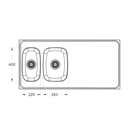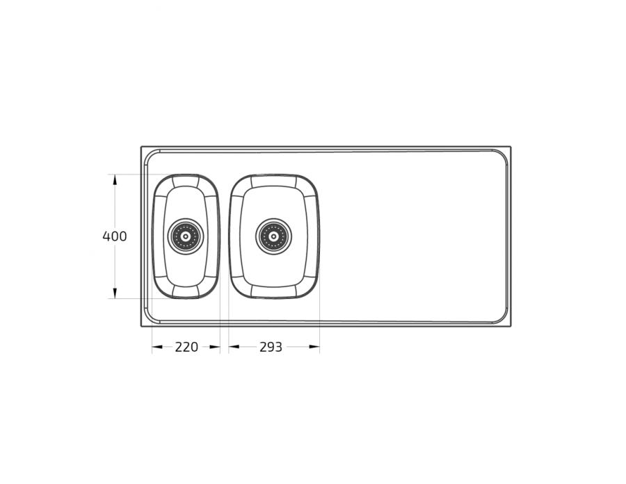 Sink that cover the entire worktop unit. The bowls are shallower than ordinary bowls, this simplifies the work and gives more space below the sink for the user’s legs and knees.