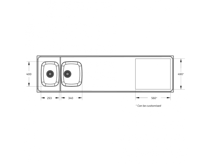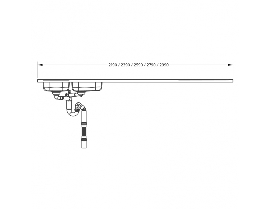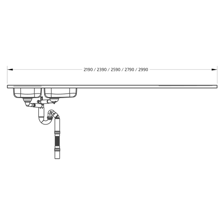 * Adapted to our height-adjustable bench systems and thus provide a 15 mm space on the wall side for splash protection. The width of our sinks is 10 mm shorter than standard to provide a 5 mm gap on each side of the height-adjustable units to the adjacent cabinet or wall