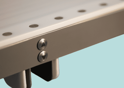 One of the Astor Invincible’s main features is its patent pending stretcher, which is made with a highly cut resistant material that is very easy to disinfect and clean. The stretcher is also incorporated into the frame, with integrated controls, to minimise gaps and nooks & crannies where dust and grime could accumulate. There is also no need for an extra padded mattress which can trap dirt, as the stretcher itself is flexible and comfortable.